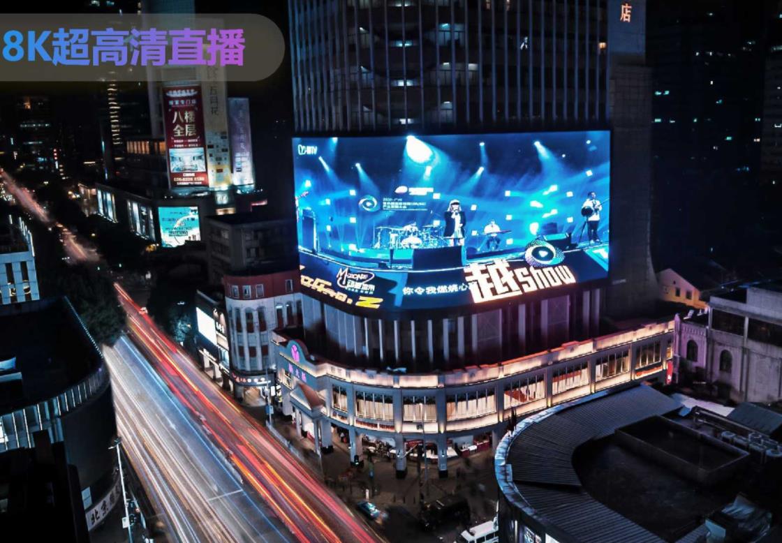 北上廣深唯一獨占步行街入口的超級8K大屏,國內首個1200平方8K超高清巨幕。