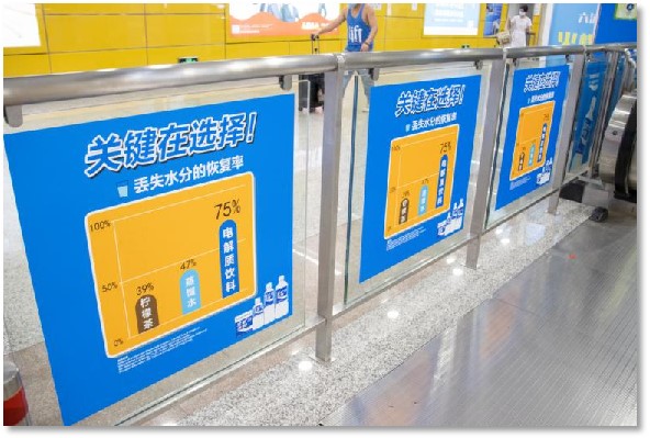 創(chuàng)意玻璃貼為粘貼在站臺(tái)與站廳上的玻璃圍欄上的海報(bào),可粘貼的范圍廣泛,并且廣告位置以單幅畫(huà)面計(jì)算,粘貼位置與組合靈活多變;