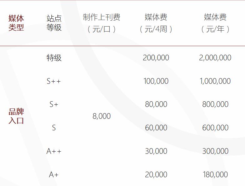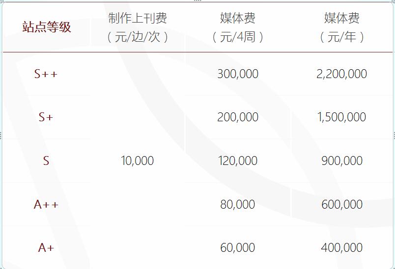 站點等級 制作上刊費