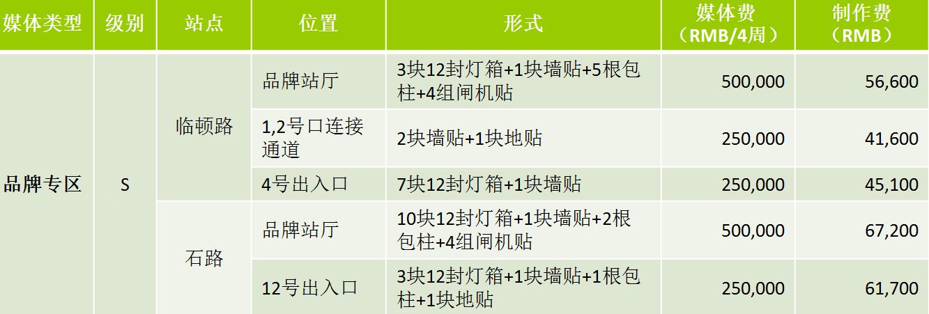 S:媒體費(RMB/4周/站):220,000元