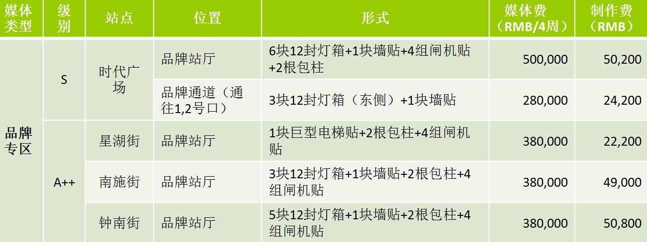 品牌站廳:3塊12封燈箱(東側)+6根包柱+4組閘機貼+2塊墻貼