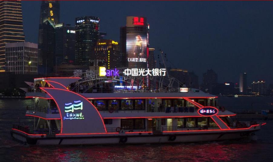 這艘新船為商務活動量身定制,非常適合企事業單位的產品發布、年會活動及商務接待等,是浦江游船廣告系列的一個全新產品。