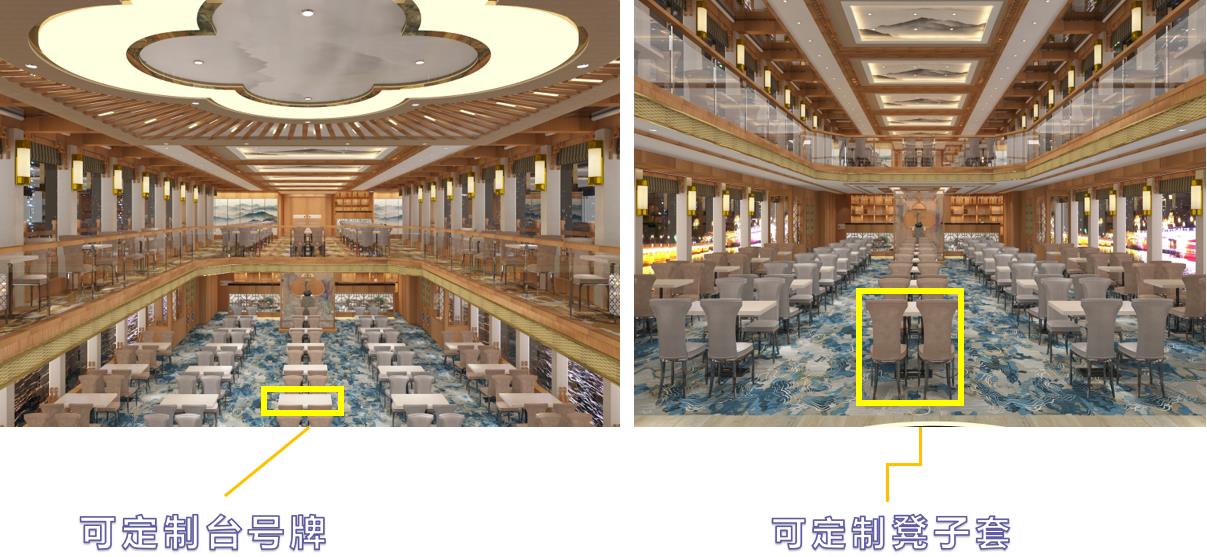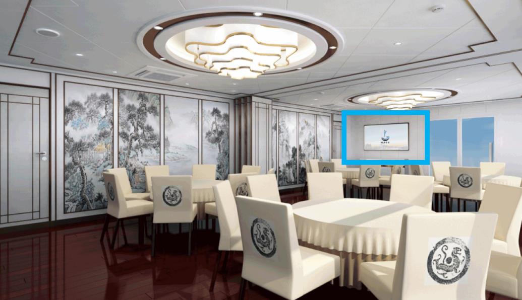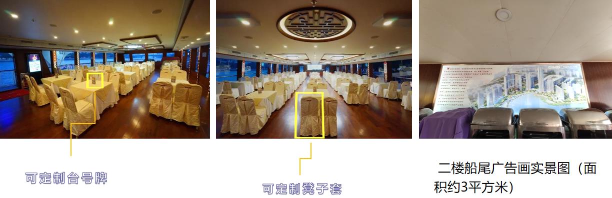 游船內部廣告位:圓桌式坐席區(qū)分布1個橫版廣告展示位