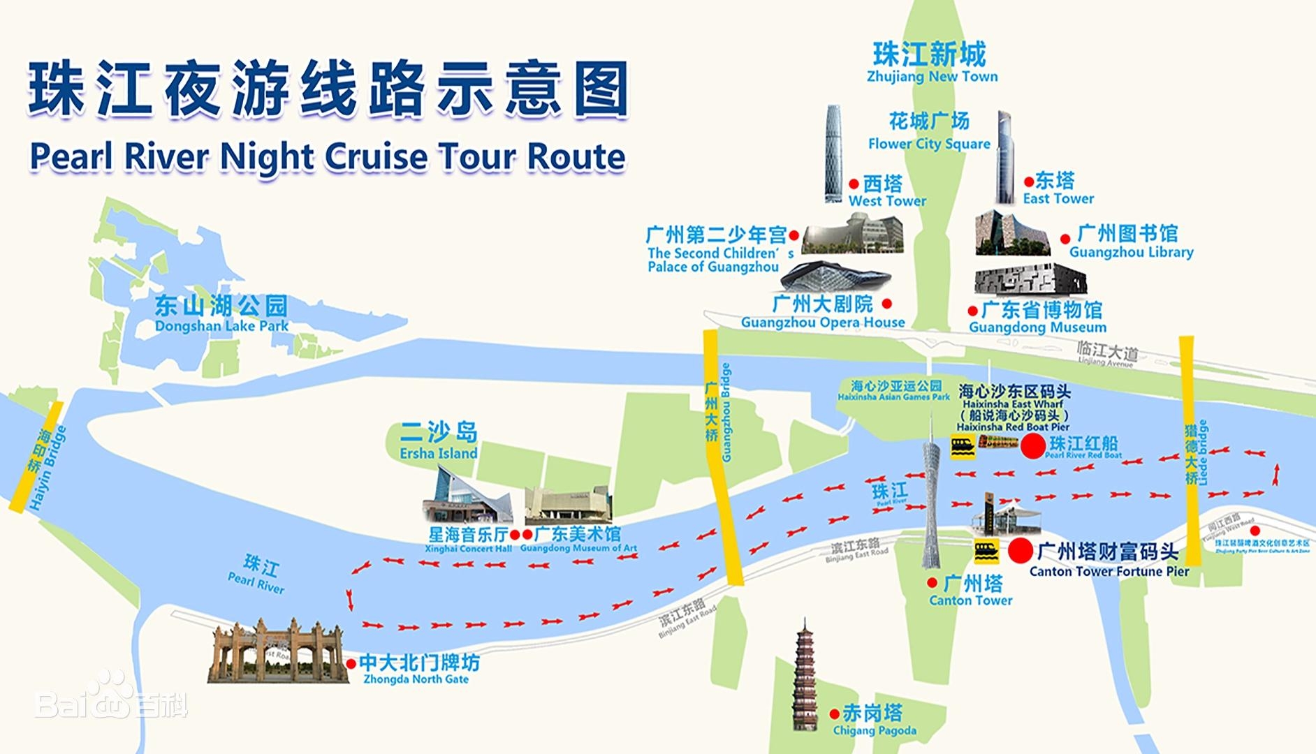 晚上珠江夜游航線圖