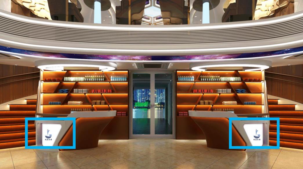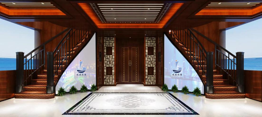 游船內部廣告位:樓梯通道區(qū)兩側分布2個異型廣告展示位