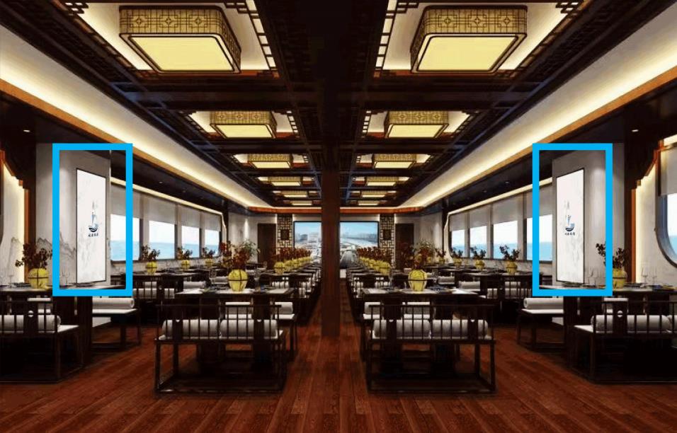 游船內部廣告位:坐席區(qū)兩側分布2個豎版廣告展示位