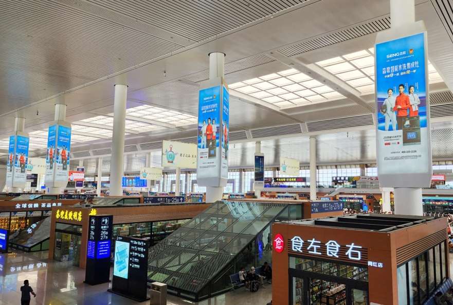 昆明南站候車大廳三棱柱廣告