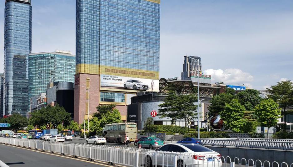 萬(wàn)豪酒店正門墻體,正佳大街,BRT與地鐵線交匯于此,路段人車流巨大,上下班高峰期更是擁堵。