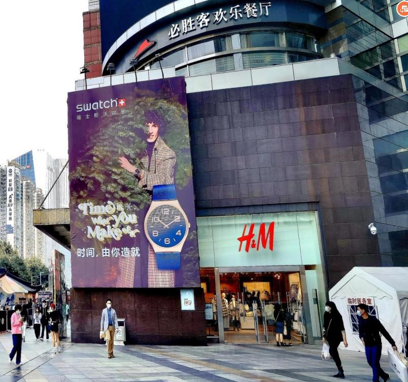 正佳廣場(chǎng)北面墻,天河路和體育東路交匯處,BRT與地鐵線交匯于此,路段人車流巨大。