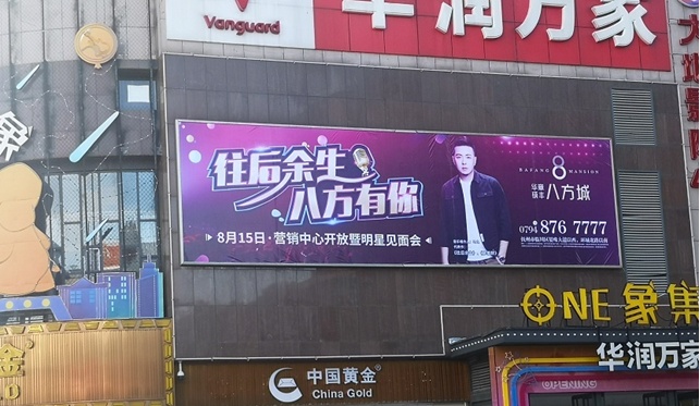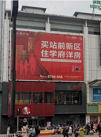 此廣告位于恒大華潤萬家店外立面戶外大牌,固定噴繪畫面,撫州新區中心,恒大御府,學府天城,碩豐天城,與撫八線相連,人車流量大,廣告效果好
