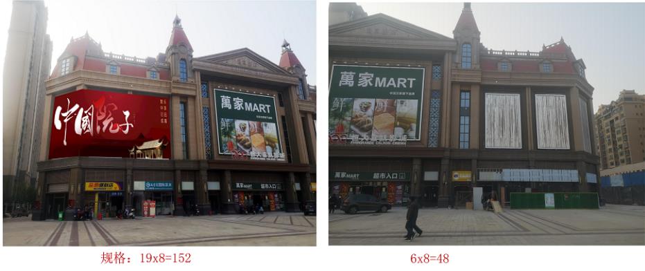 此廣告位于臨川華潤萬家外墻廣告位,臨川區城市中心,人車流量大,廣告效果好。