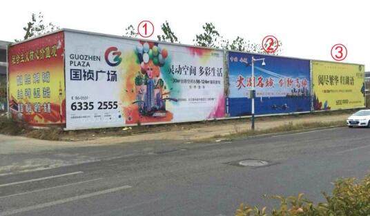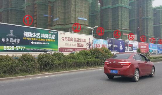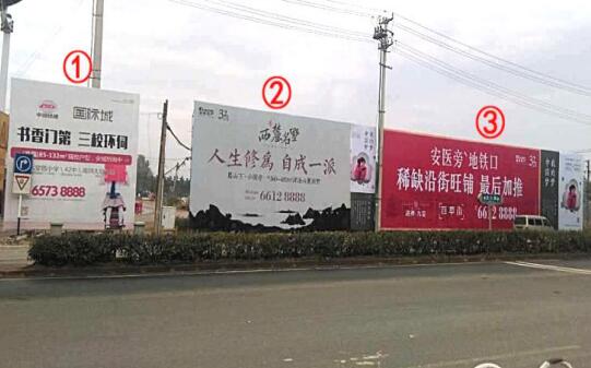 | 合肥落地看板廣告 媒體位置:長(zhǎng)江西路與長(zhǎng)寧大道交口東300米落地廣告牌 發(fā)布形式:噴繪畫面 媒體規(guī)格: 2號(hào):14.5m×7m=102㎡ 3號(hào):26.6m×7m=186㎡ 媒體簡(jiǎn)介:該處是往來(lái)合肥新橋國(guó)際機(jī)場(chǎng)、六安方向、及上下合肥蜀山高速收費(fèi)站必經(jīng)之地,周邊新老地產(chǎn)項(xiàng)目眾多,牌面不僅覆蓋長(zhǎng)江西路往來(lái)車流,亦可覆蓋合肥西繞城高速上車輛視線,牌面緊鄰馬路,可視效果佳。 |