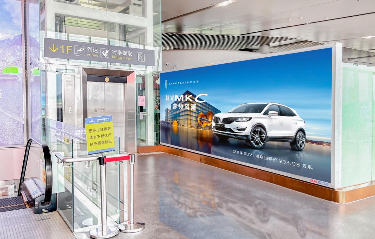 二層國內(nèi)出發(fā)到達混合通廊下電梯旁廣告