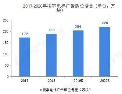 談到電梯廣告,那么就不得不談到中國的電梯行業(yè)。近年來我國房地產(chǎn)行業(yè)的高層建筑投資比例在增加,加速了電梯的需求量。中國電梯需求從2011年的37萬臺提升至2018年的94萬臺,預(yù)計2020年我國 電梯需求量將在110萬臺左右。電梯樓宇框架的增量空間在于國內(nèi)電梯需求量的增長,一般而言進(jìn)行廣告投放的電梯每部安置2塊,剔除不適合投放的電梯部數(shù),2017-2020 年樓宇電梯廣告版位的增量分別約為 172、188、204、220 萬塊,每年同比增速在 8-9%之間。
