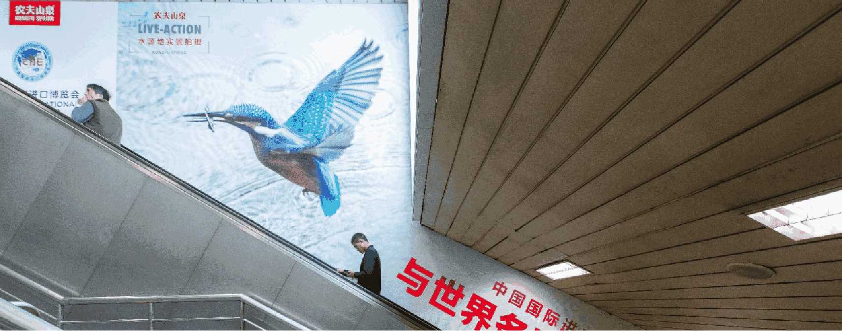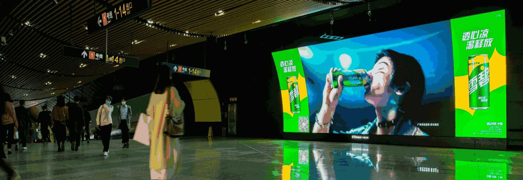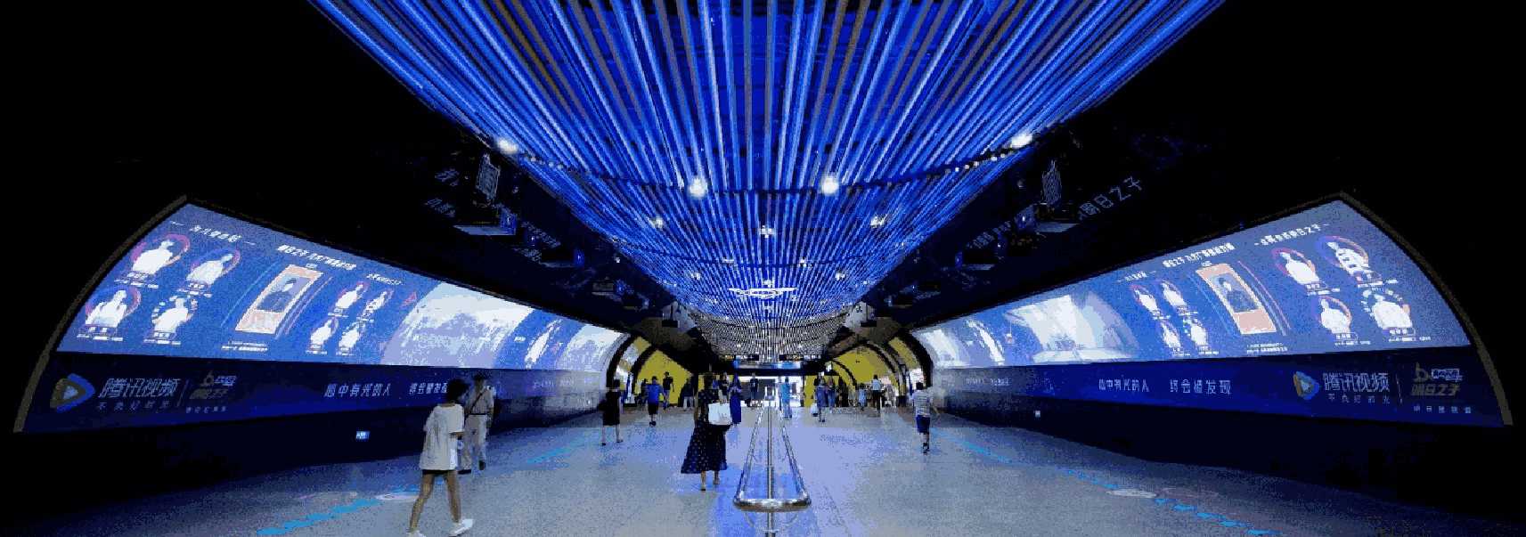 由 電子屏 與 超級動感燈箱,相互交錯組成的電子媒體通道,大面積的靜態(tài)海報與高精度的動態(tài)畫面不斷沖擊乘客視覺;頂部天花板與通道內(nèi)柱體的鏡面環(huán)境設(shè)計從空間上帶來沉浸式的3D體驗;每個區(qū)域的定向音響環(huán)繞聲系統(tǒng) 從聽覺上刺激乘客的感官體驗 ,日均客流達(dá)55萬*人次 支持動畫、TVC、電子海報等,可制作各種大型創(chuàng)意效果
