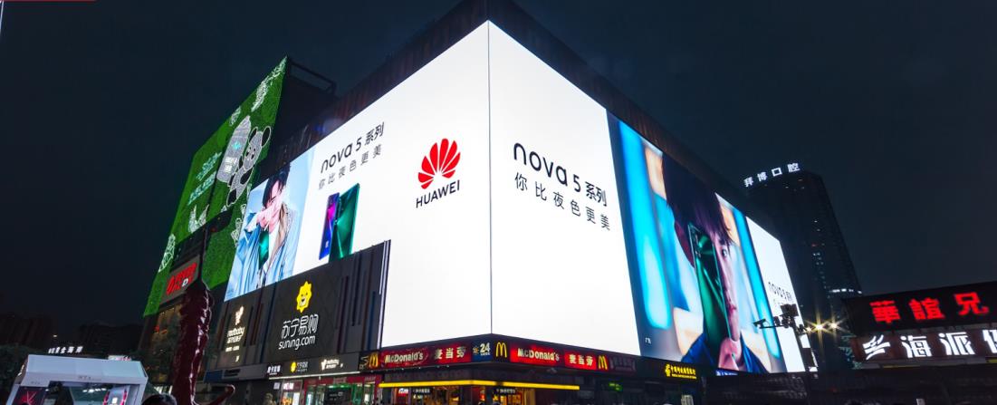 高顏值:融入建筑美學(xué)與商圈環(huán)境,使用高精度屏體一展都市繁華;區(qū)別于其他地標(biāo)展現(xiàn)形成受限,大屏方正,視野處于行人的觀看最佳區(qū)域,帶給目標(biāo)受眾更具沉浸式的體驗(yàn),更能完美呈現(xiàn)品牌客戶的動(dòng)態(tài)視頻和靜態(tài)畫面。
