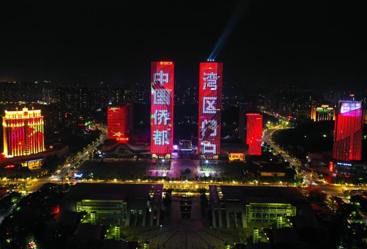 江門地標廣告,江門蓬江萬達雙子塔樓體燈光秀廣告,江門燈光秀廣告,萬事成傳媒