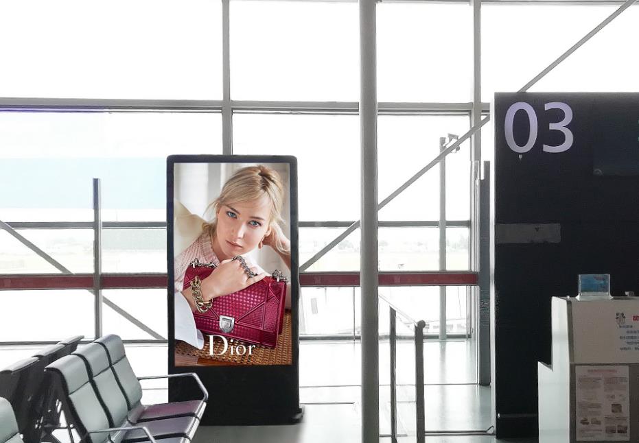 揚州泰州機場廣告-揚州泰州機場二層候機區登機口旁電子刷屏廣告