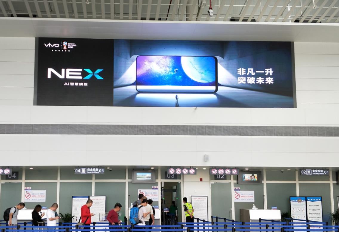 興義萬峰林機場T2一層出發安檢口led廣告,萬事成傳媒