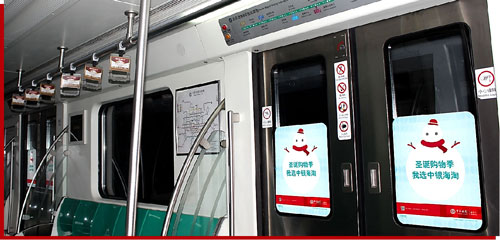 與地鐵乘客最近的廣告媒體——在車內、在上下車之間,廣告將與乘客進行深入的溝通 地鐵人群每周平均乘坐頻次為6.3次,每位地鐵乘客平均乘車時間為29.9分鐘。