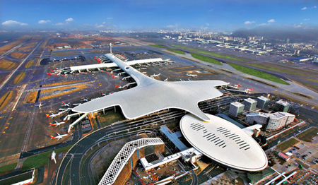 深圳寶安國際機(jī)場是中國境內(nèi)第一個(gè)實(shí)現(xiàn)海、陸、空聯(lián)運(yùn)的現(xiàn)代化國際空港,也是中國境內(nèi)第一個(gè)采用過境運(yùn)輸方式的國際機(jī)場,陸路有廣深高速公路、機(jī)荷高速公路和107國道連接香港、澳門、廣州、東莞、惠州、中山和珠海,機(jī)場擁有千噸級泊位的客貨運(yùn)碼頭,海路通過水翼船和香港、澳門、珠海連接,空中有直升機(jī)連接香港、澳門,集疏運(yùn)條件十分優(yōu)越,往來于香港和世界各地之間的航空器可以采用最簡便的方式在這里起降和進(jìn)行客貨運(yùn)作,機(jī)場對客貨的運(yùn)作管理采用國際通行做法,提供中國境內(nèi)最為快速和便利的服務(wù)。深圳寶安國際機(jī)場以中國經(jīng)濟(jì)發(fā)展最迅速的三大中心地帶之一的珠江三角洲區(qū)域?yàn)橐劳校兄S富的航空客貨資源以及一流的硬件和軟件,是任何一家航空公司飛往中國的良好選擇。