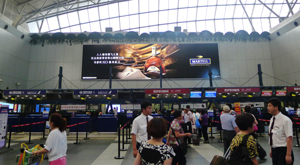 廣告位置:T2航站樓國內、國際到達出口上方 廣告編號:BJ-LED-1、BJ-LED-2