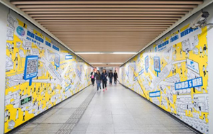 地鐵墻貼廣告一般分布于地鐵站的通道處兩側或一側,由大面積的海報形式組成。畫面一般為連貫性的廣告宣傳畫面或者有故事情節的組合畫面。