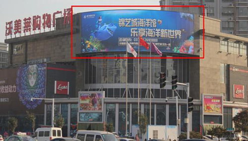 位置:鄭州市金水區(qū) 北三環(huán)快速路豐慶路沃美萊購物廣場LED大屏 形式:墻面 LED廣告