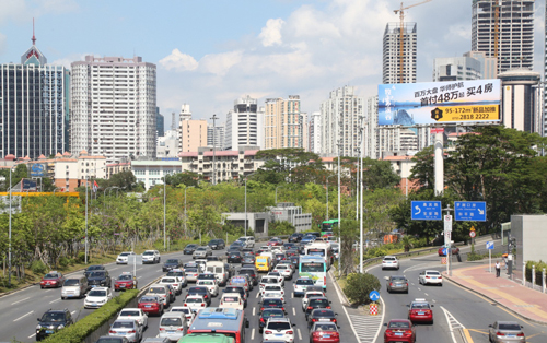 濱河大道是中國廣東省深圳市的一條道路,位處深圳特區南面,連接東西。是深圳車流密度最大的主干道之一,而寶安南路是連接市中心的交通要道,因此廣告牌垂直于路面,大氣美觀,處于十分顯眼的位置,可視距離非常遠,視覺效果十分突出,該廣告牌能覆蓋了羅湖,福田,南山往來的車輛及人群,受眾廣泛且層次高。