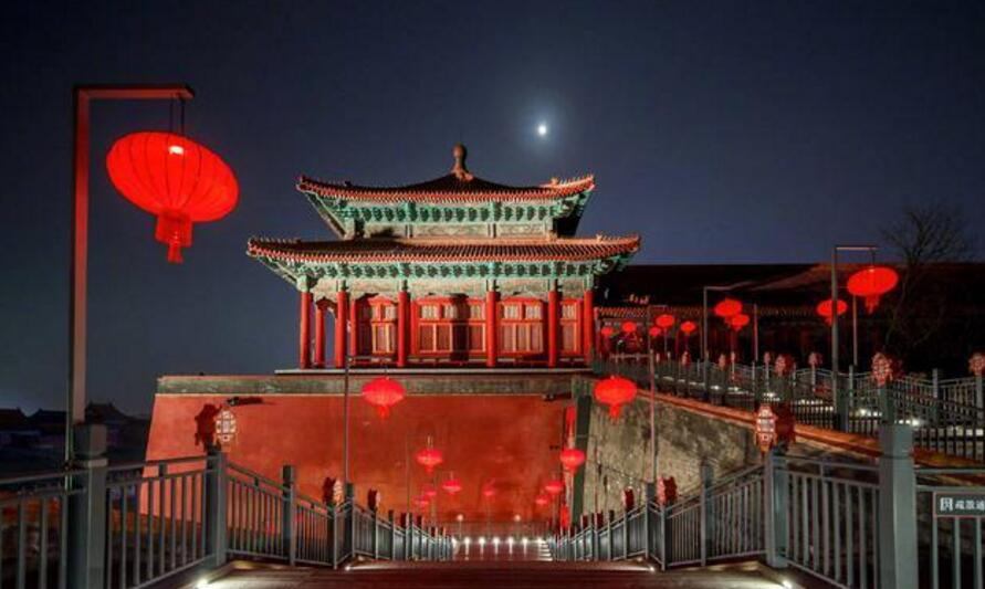 沿著城墻步行至東南角樓,近千米長(zhǎng)布滿紅燈籠的故宮東城墻便出現(xiàn)在眼前,東城墻左邊是靜謐的紫禁城內(nèi)城,右邊則是北池子大街和遠(yuǎn)處的王府井等現(xiàn)代建筑。而盡頭處的角樓被各種紅襯得尤為喜慶,自成一幅美妙的畫(huà)卷。