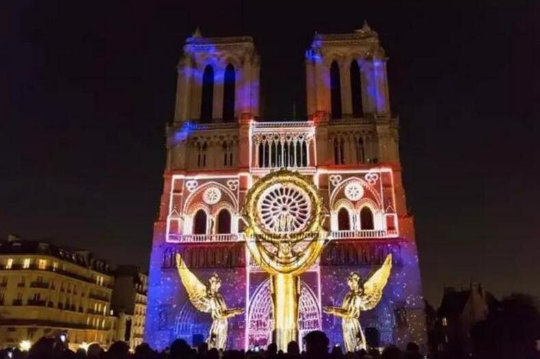 2017年11月,為了紀(jì)念第一次世界大戰(zhàn)結(jié)束一百周年,法國(guó)以巴黎圣母院為舞臺(tái)背景舉辦了一場(chǎng)“圣母之心”燈光秀,在當(dāng)年可是引起了不小的轟動(dòng)。
