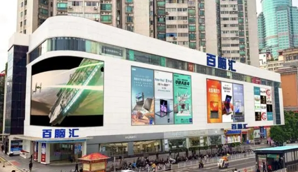 而百腦匯目前廣告位大小不一,形式低端,影響建筑立面品質及完整性,方案將結合建筑一體化設計,局部打造裸眼3D大屏。